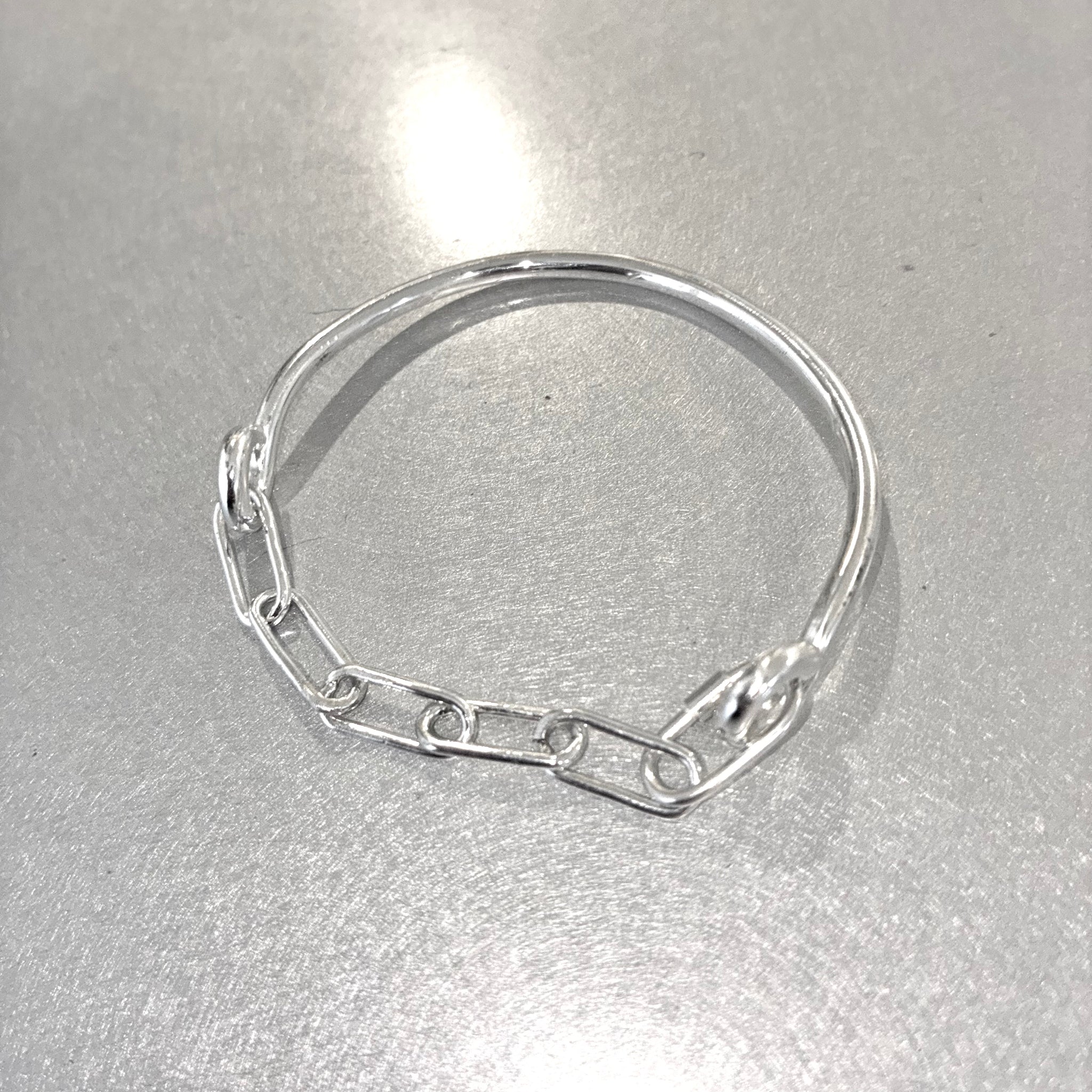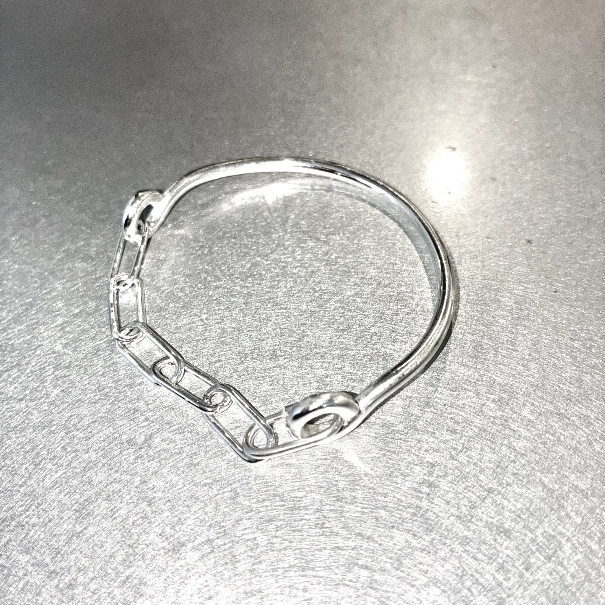 Chunky Clip chain connected to solid bar with screw clasp.